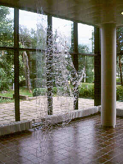 ”Hiljalleen syntynyt” on herkästi valoon reagoiva työ. Siimaverkko häviää ja ilmestyy riippuen valon määrästä ja suunnasta. Työ on luonteeltaan aineeton, mutta yhdessä sopivan valon kanssa se ottaa tilan haltuunsa luomalla varjojen verkoston.