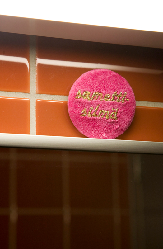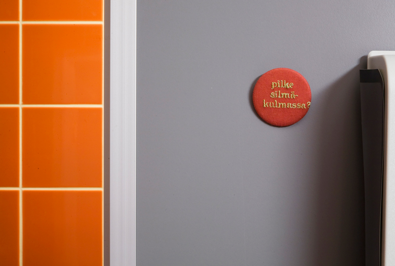 Pinssit muodostavat seinälle pikselikuvan ajattelevasta suusta, jolla viittaan ajattelemiseen. Lisäksi pinssit levittäytyvät museovitriineihin kommentoimaan museoesineitä. Pinssejä löytyy myös muualta museotilasta sekä henkilökunnantiloista ja henkilökunnasta.
