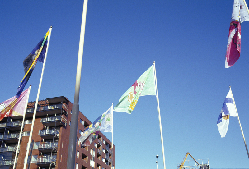 Keväällä 2004 Espoon taidemuseon (nyk. EMMA) museopedagoginen osasto pyysi Ruusutorpan koulun luokkaa 6J toteuttamaan ensimmäiset omat liput aukiolle. Minua pyydettiin suunnittelemaan lähtökohdat lipputeokselle sekä ohjaamaan lippujen työstäminen.