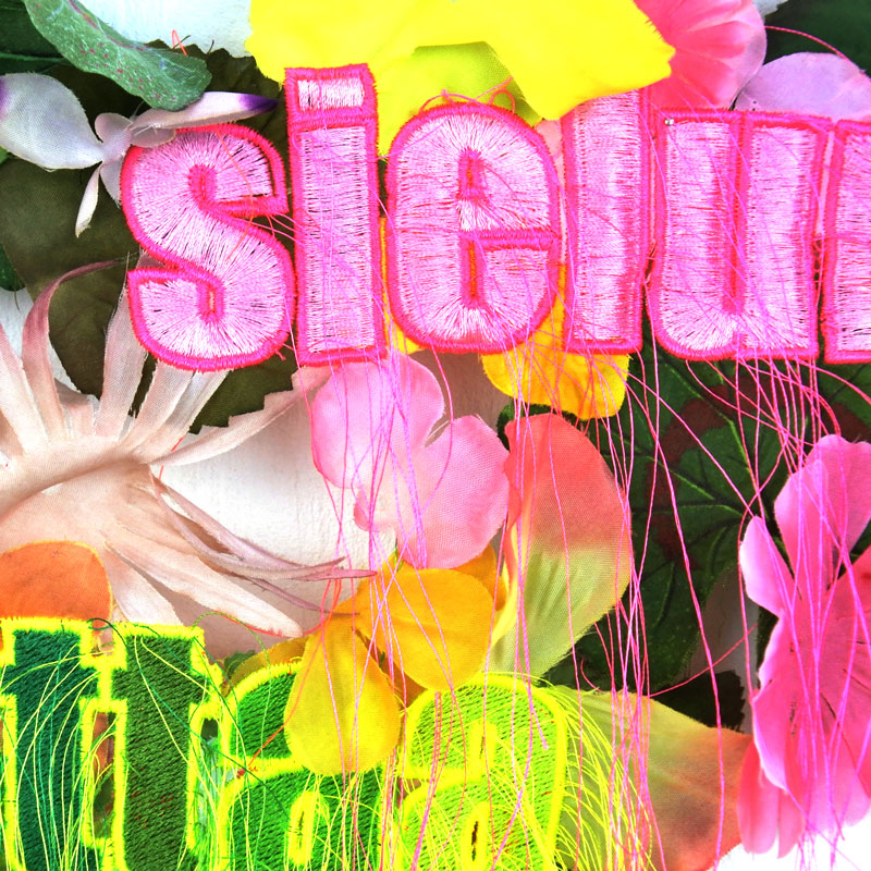 Antaa sielun rehottaa, 2022 Materiaalit: hävikkimateriaalit, uv-langat, polyamidi, kulta 18K Tekniikka: digitaalinen kirjonta, kollaasi Koko (lks): 40 cm x 52 cm x 5 cm