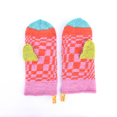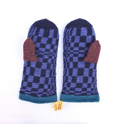 Värjäsin langat. Materiaalina on suomalainen lampaanvilla. Aloin virkkaamaan, niinkuin usein ennenkin, kun tarvitsen oman tilan ja rauhan käsitellä tapahtuneita. Syntyi 21 paria villalapasia, jotka numeroin niinkuin museoesineet tai grafiikanlehdet.