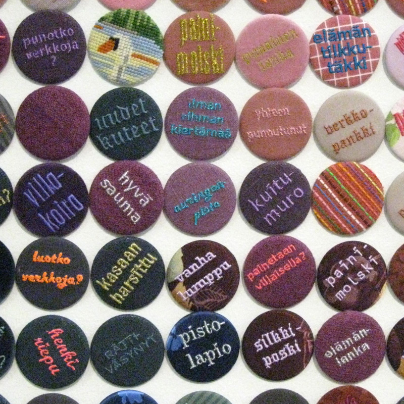 On ollut hauska huomata, kuinka tekstiilitaidetta on kaikkialla. Puhutaan ”punaisesta langasta”, ”elämän tilkkutäkistä”, ”tavallisesta sukankuluttajasta”, ”henkirievusta” jne. sen enempää sanontojen alkuperää miettimättä. Käsitteet ovat syntyneet eri aikakausina, mutta ovat puheessa ihan tätäpäivää.