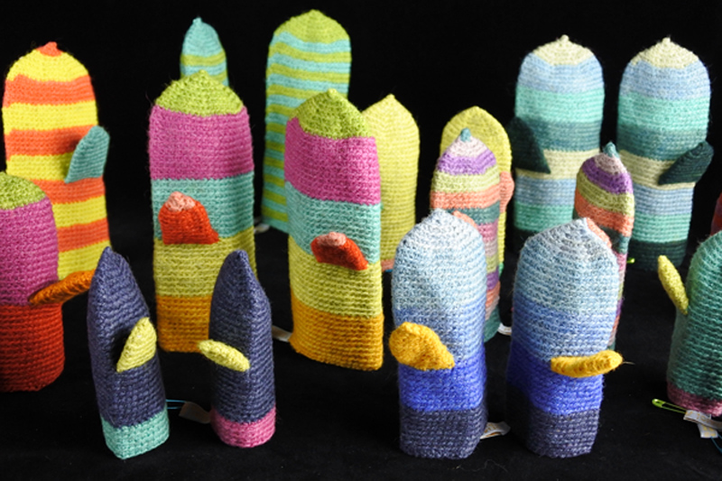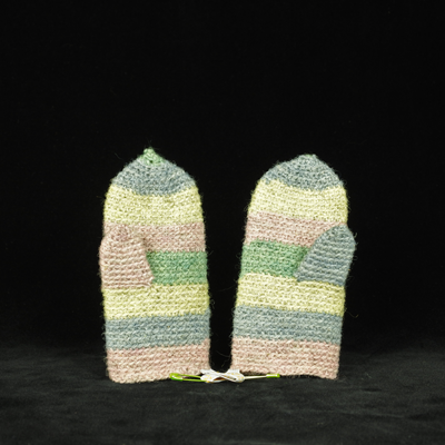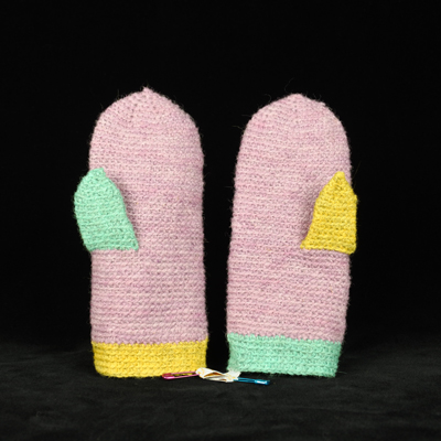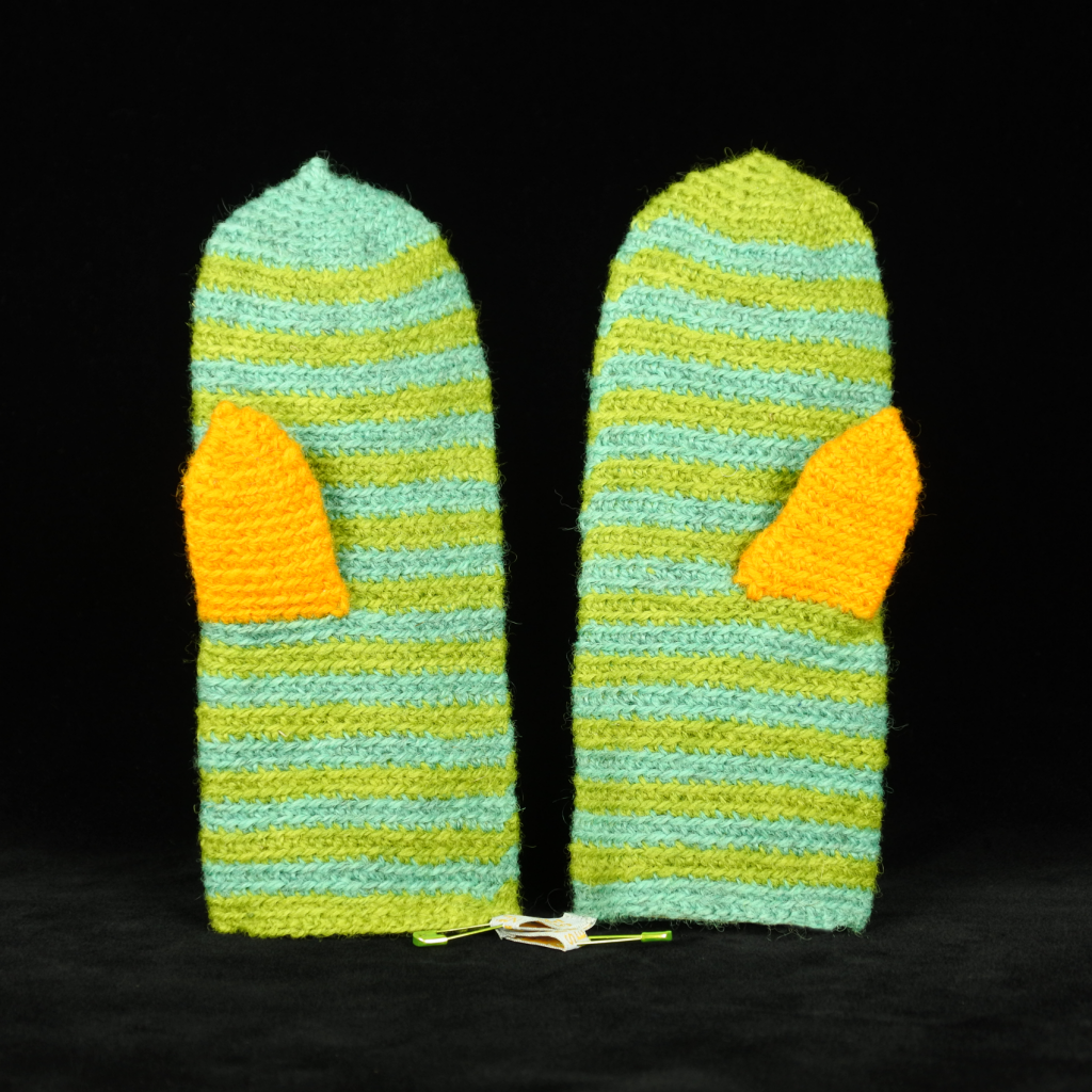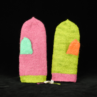 Kaiken ahdistavan keskellä, halusin tehdä edes jotakin, joka auttaisi pakolaisia. Pohjaten aiempaan Villainen kädenpuristus-teokseeni, päätin tehdä lapsipakolaisille lämmittäviä villalapasia. Valitsin materiaaleiksi suomenlampaan ja kainuun harmaksen villan. Suomenlammas ja kainuun harmas ovat suomalaisten lampaiden alkuperäisrotuja.  Värjäsin värivalikoiman, jonka koin ilmetävän huoletonta, rauhallista ja positiivista ilmapiiriä.