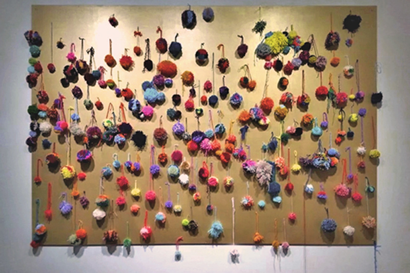 Mukavuusalue-näyttelyssä pääsin toteuttamaan idean Tupsunomia-teokseni. Se esittää uuden tieteen/taiteen/filosofian alan: Tupsunomian. Todellinen tupsisti on ihminen, joka pystyy etsimään sitä mistä pitää ja uskaltaa keskittyä leikkiin, nautintoon ja iloon.