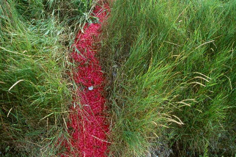 Värjäsin haapahaketta 450 litraa siten, että minulla oli 20 eri väriä ja sävyä puruja käytössä. Eri sävyjä ja värejä sekoittamalla ”maalasin” pururadan maastoon. Valmis pururata oli noin 100 metriä pitkä.